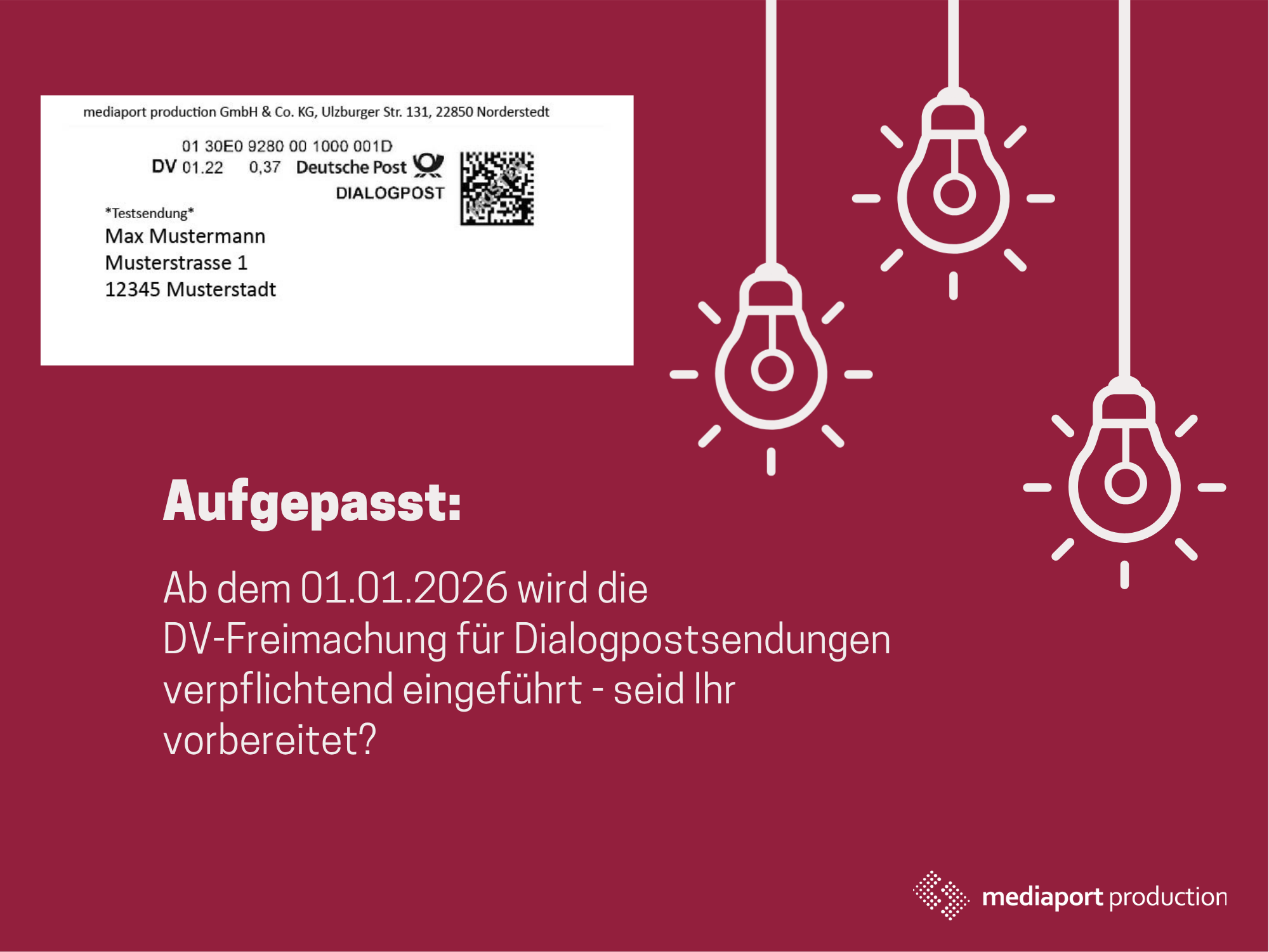 Ab dem neuen Jahr führt die Deutsche Post den Data-Matrix-Code (DMC) ein. Dieser zweidimensionale Code ersetzt den bisherigen Frankiervermerk und bringt einige Vorteile mit sich: